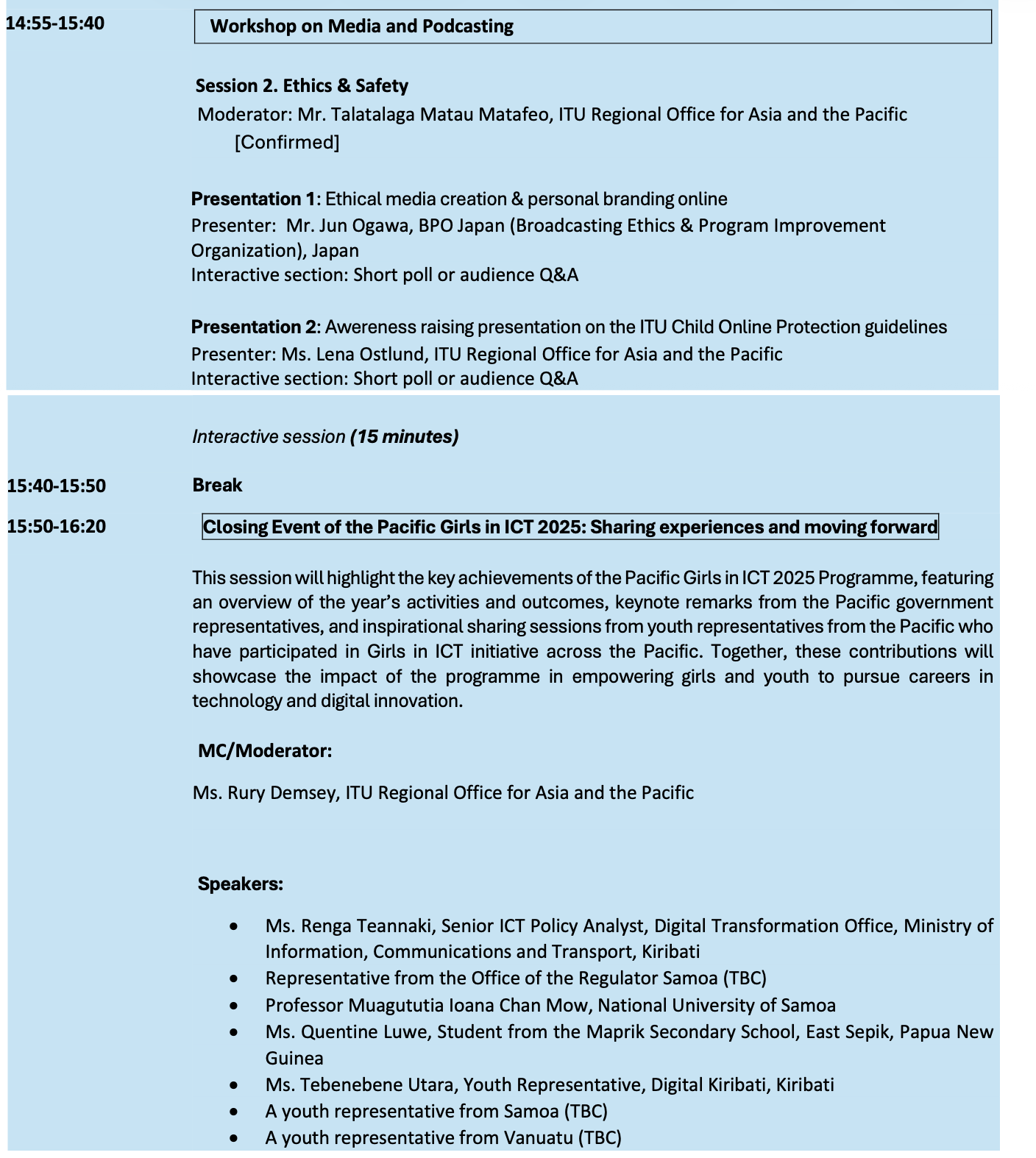As part of the Pacific Girls in ICT Day 2025, the International Telecommunication Union (ITU) and the Asia-Pacific Institute for Broadcasting Development (AIBD) are co-organizing the Online Media and Podcast Workshop tomorrow afternoon, Pacific time.