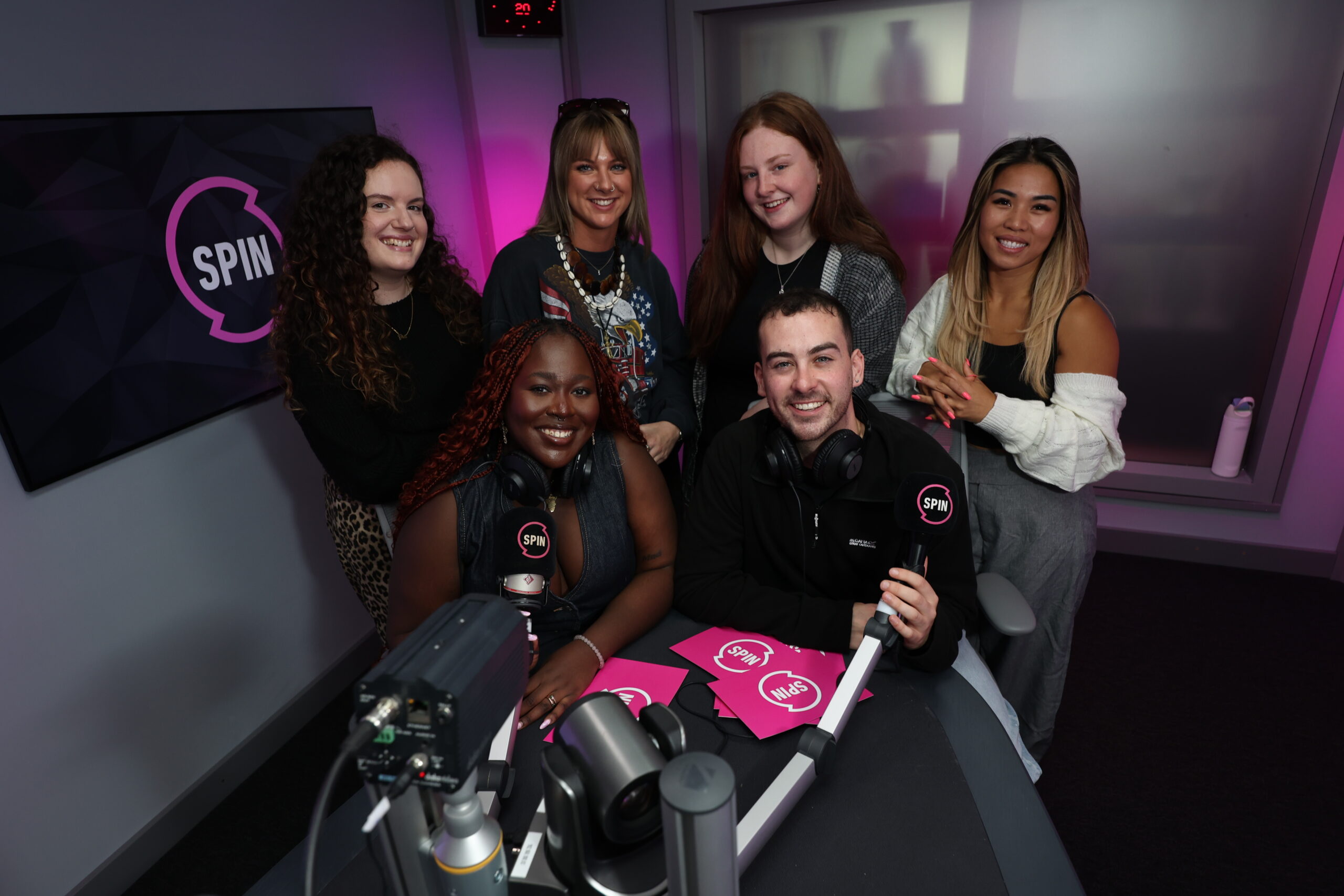 SPIN1038 On-Air Final Group Shot 1 (L-R: Nicola Ní Dháibhí, Ashley Makombe, Chloe King, Jade Buttle, Sean Carey, Thammy Gough)